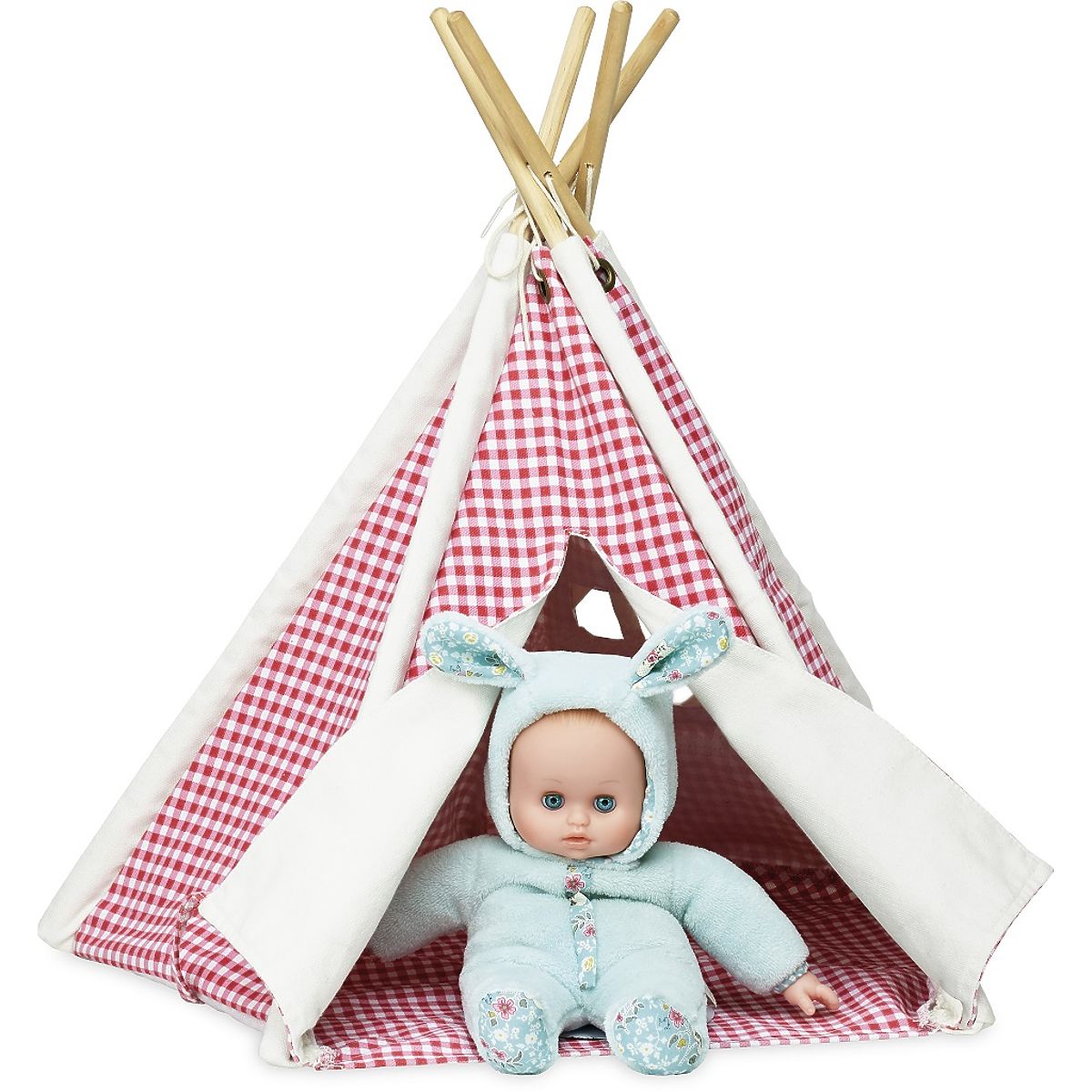 Prekrasan mini šator s kariranim uzorkom, idealan za lutke. Drvena osnova s tekstilnim prekrivačem jednostavno se sastavlja. Tekstil je crveno-bijeli. Glavne značajke: šator za lutke, čvrsta konstrukcija