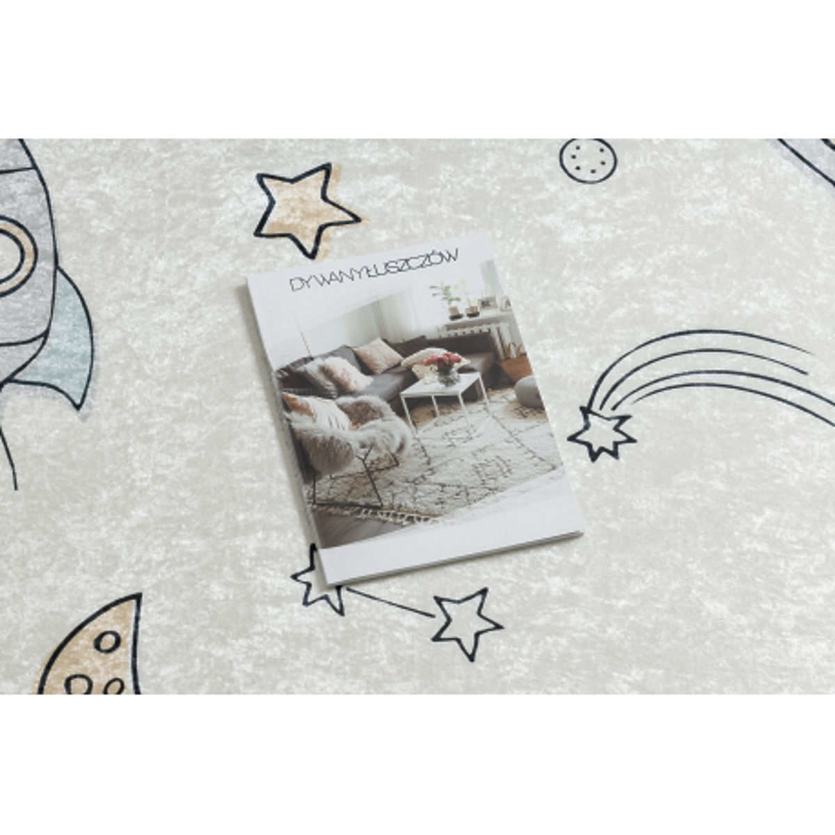 Krenite s djecom u svemirsku avanturu uz pravokutni tepih BAMBINO s motivom rakete i zvijezda. Krem boja djeluje nježno i skladno, pa se savršeno uklapa u svaku dječju sobu. Razigrani dizajn potiče maštu i donosi radost pri svakoj igri. Tepih je mekan, ugodan na dodir, siguran zahvaljujući protukliznoj podlozi i vrlo lako se održava – može se prati u perilici rublja. Savršen izbor za igraonicu, dječju sobu i kutak za odmor.