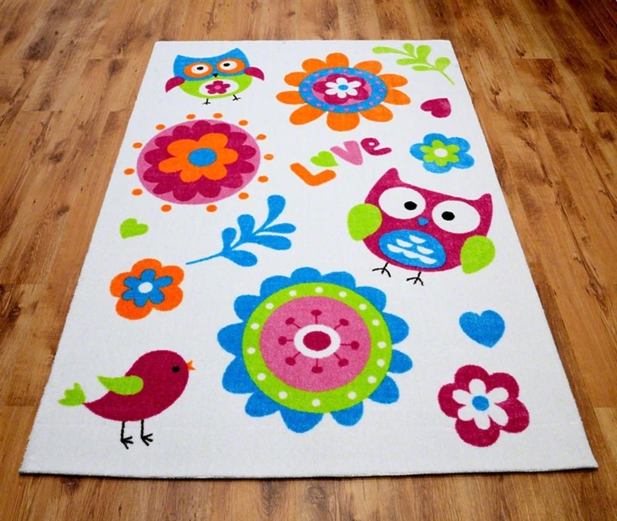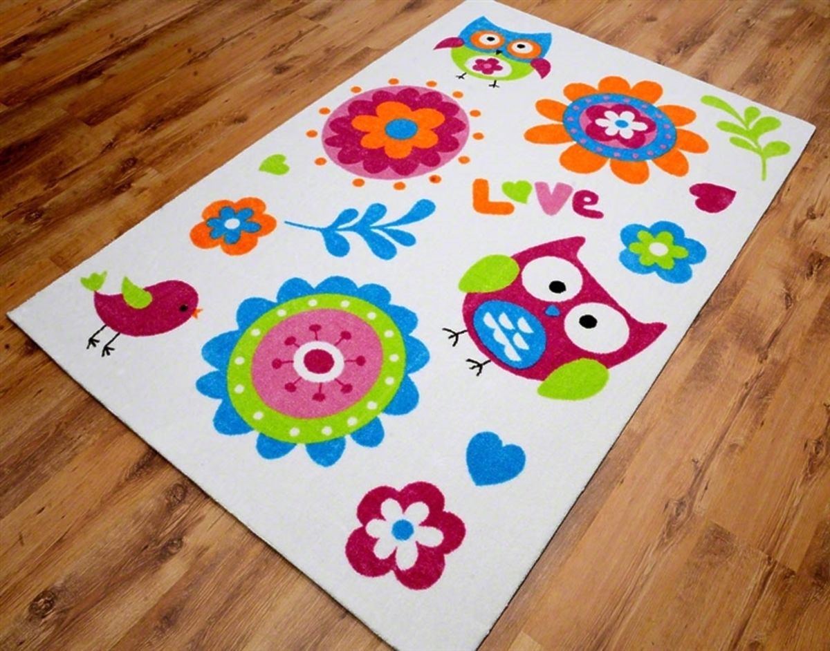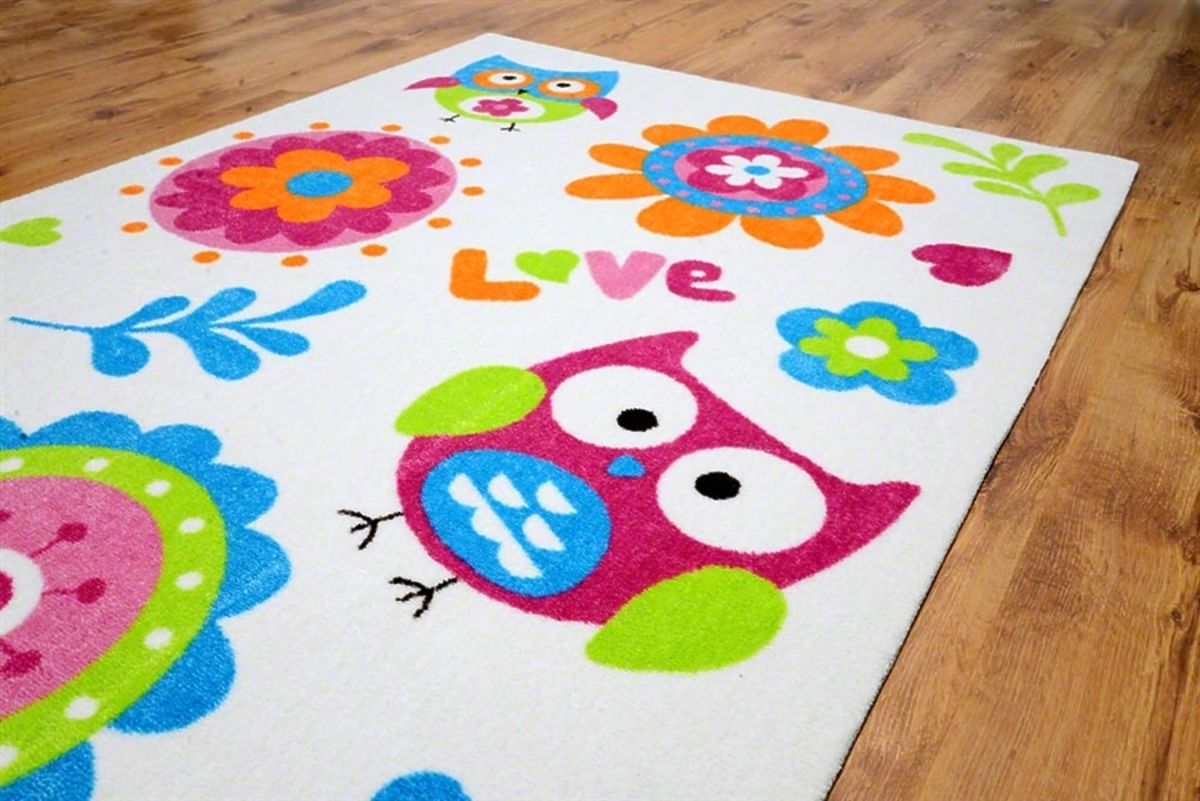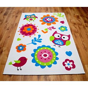 Jsou u vás v kurzu momentálně sovičky? Má doma vaše dítko všechno, co má na sobě sovičku? Pak jistě ocení i dětský koberec s motivem soviček! Bílý podklad a na něm sovičky, ptáčci, květy v různých barvách. Dětský pokojíček se díky tomuto koberci rozzáří a rozsvítí! Je složen z polyacrylu, podklad koberce je vyrobený z juty. - Výška: 1 centimetr