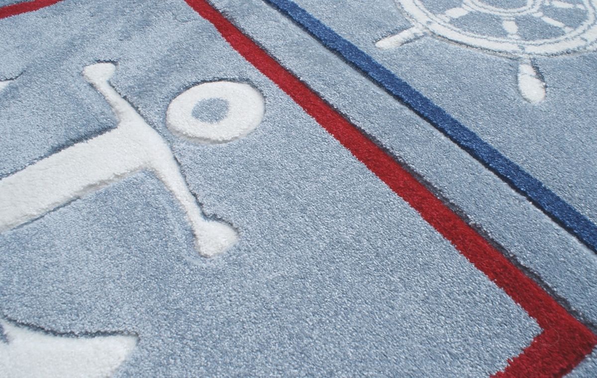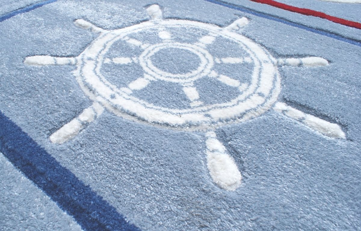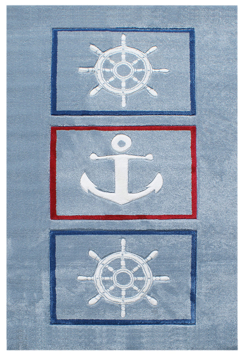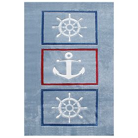 Kluci mají úžasnou fantazii a na tomto koberci s kotvou a kormidlem můžou obeplout celý svět!  Luxusní koberec značky Happy Rugs od Německé společnosti LIVONE si zamiluje každý člen rodiny. Koberec je velmi příjemný na dotek, snadno se udržuje a skvěle se kombinuje s ostatním dětským nábytkem. Dětem navíc poskytne perfektní místo na hraní i lenošení. Koberec je vhodný i pro podlahové topení.