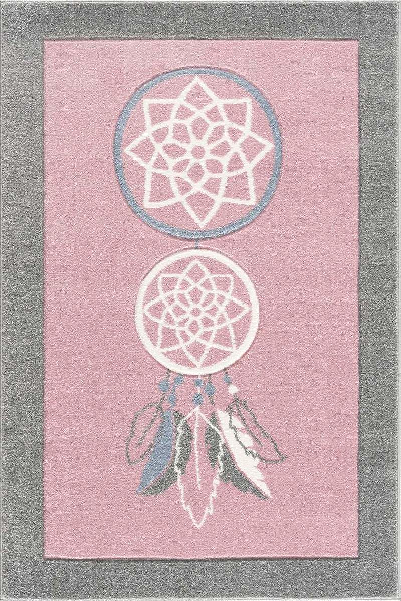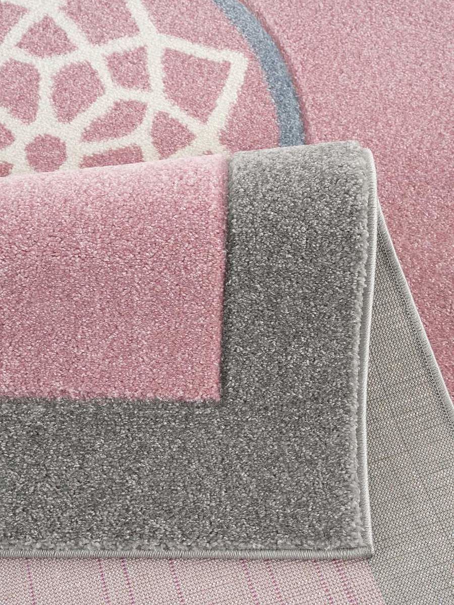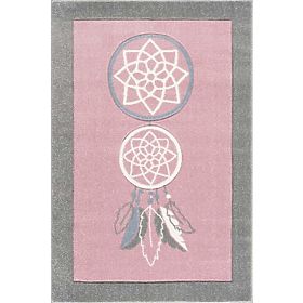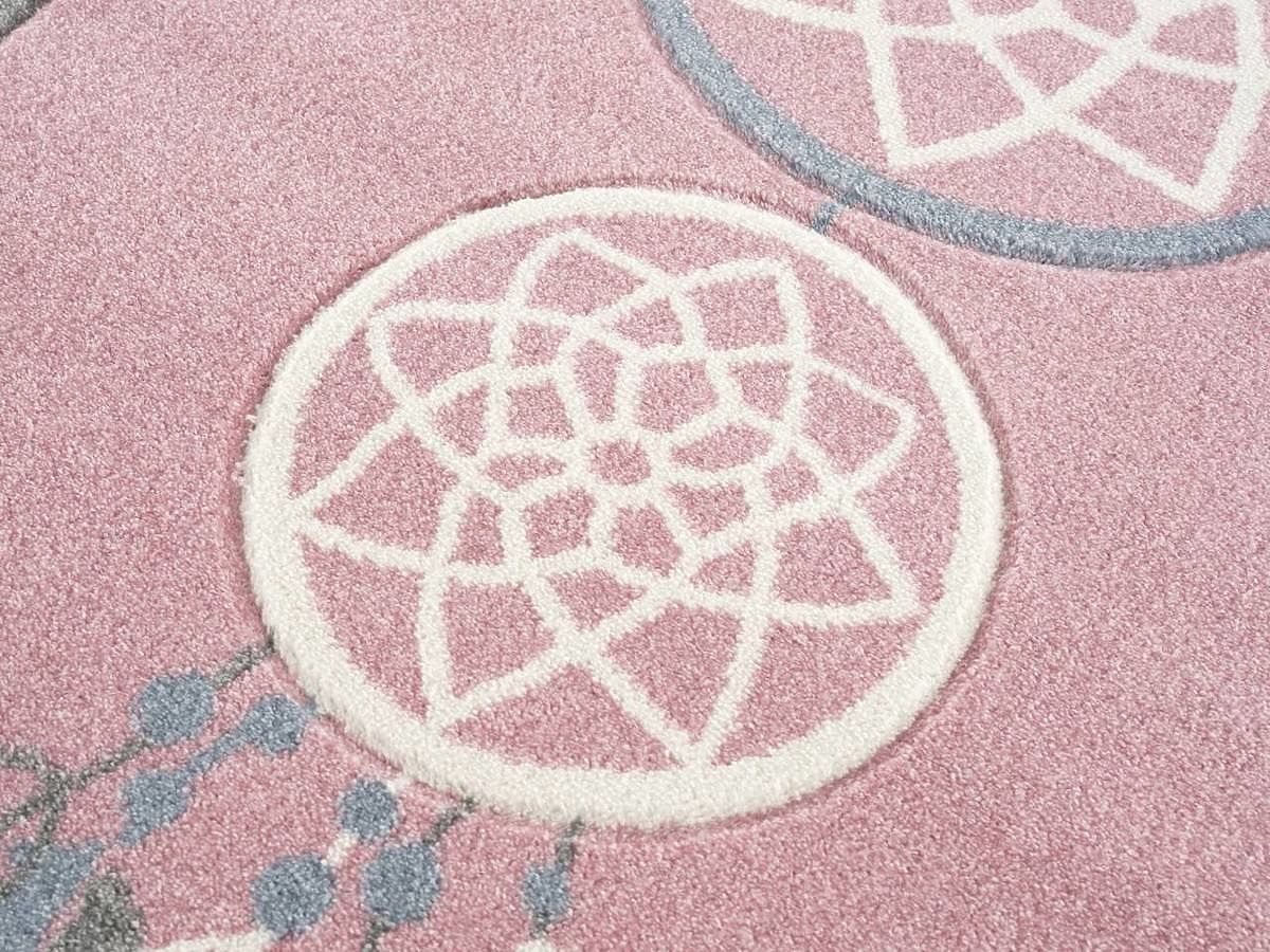 Luxusní růžovo-šedý koberec s motivem lapače snů od německé společnosti LIVONE do dětského pokoje pro holku.