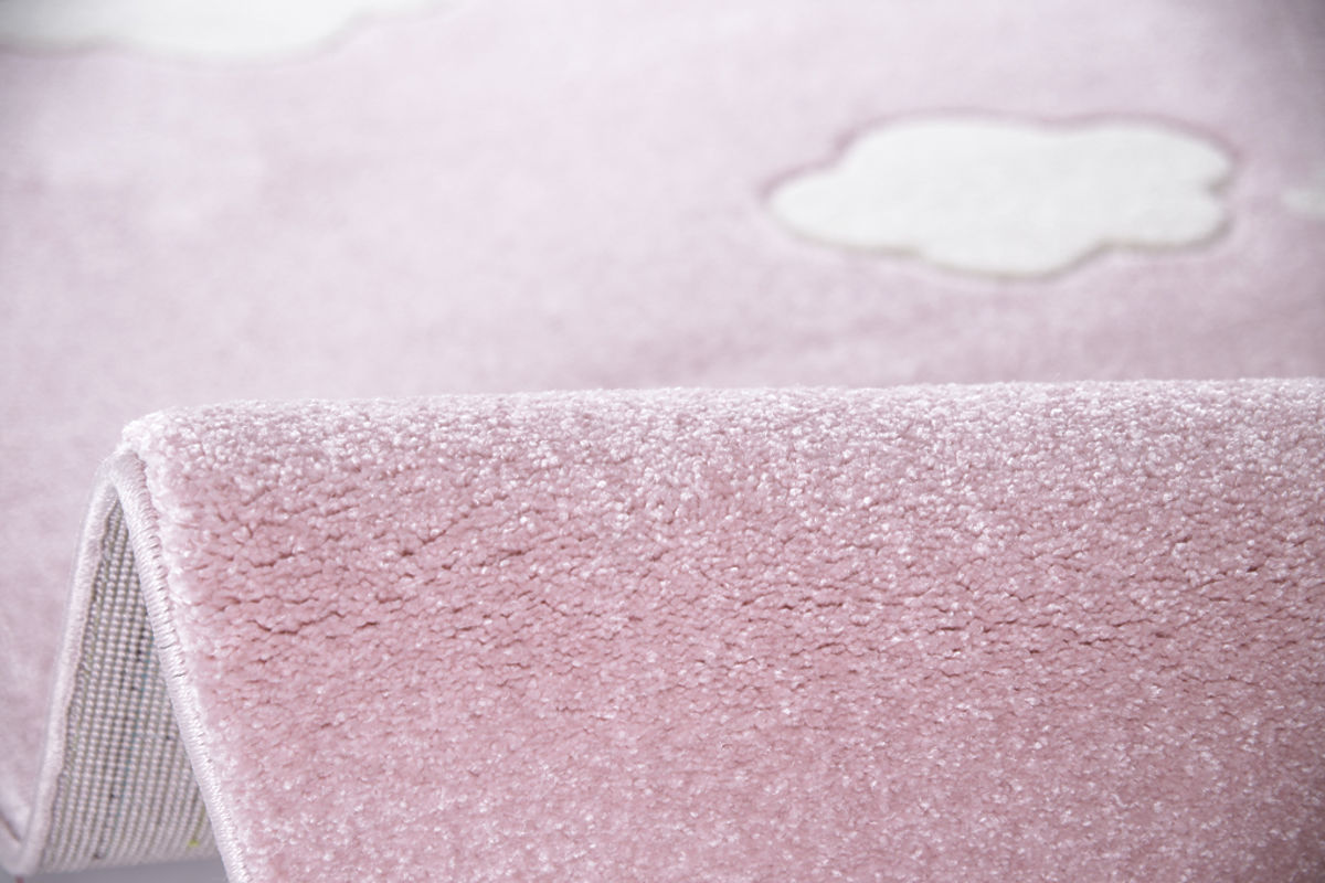 Růžový koberec s mráčky značky Happy Rugs od Německé společnosti LIVONE si oblíbí každá holčička. Koberec je velmi příjemný na dotek, snadno se udržuje a skvěle se kombinuje s ostatním dětským nábytkem. Dětem navíc poskytne perfektní místo na hraní i lenošení. Koberec je vhodný pro podlahové topení.