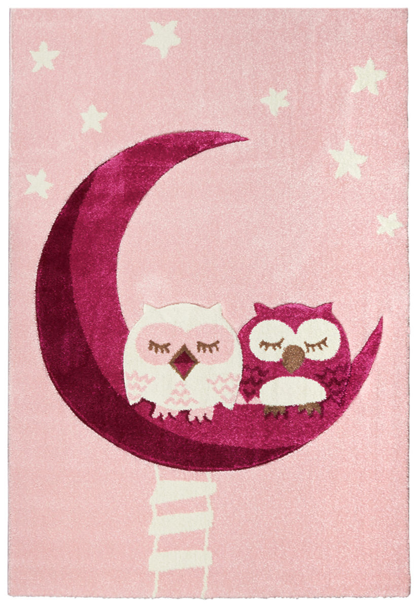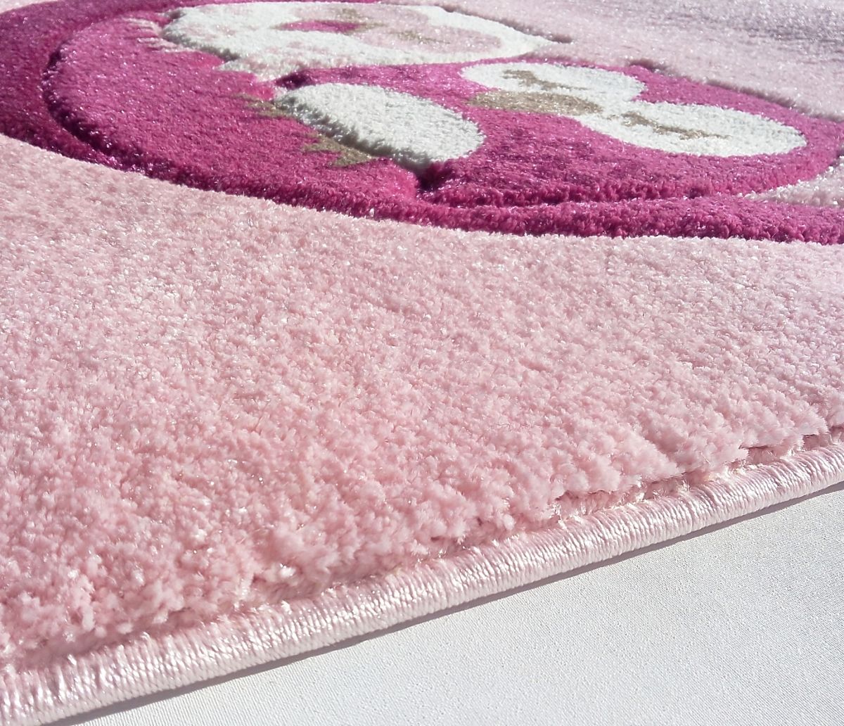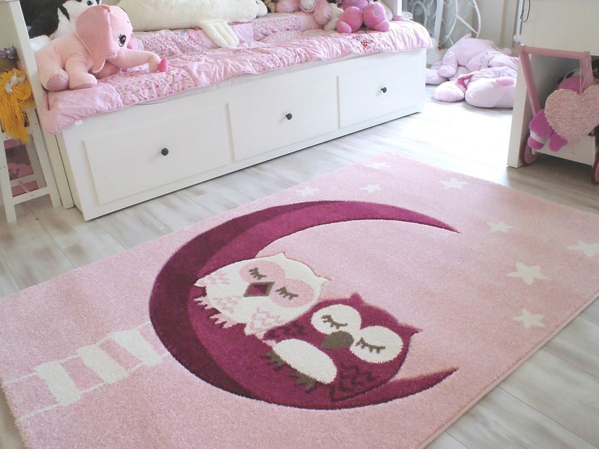 Dětský koberec je v příjemné růžové barvě, doplněn o krásně barevné sovičky. Vzhledem k barevnému provedení si jej zamilují zejména holčičky. Hodí se také do studentských pokojíčků.