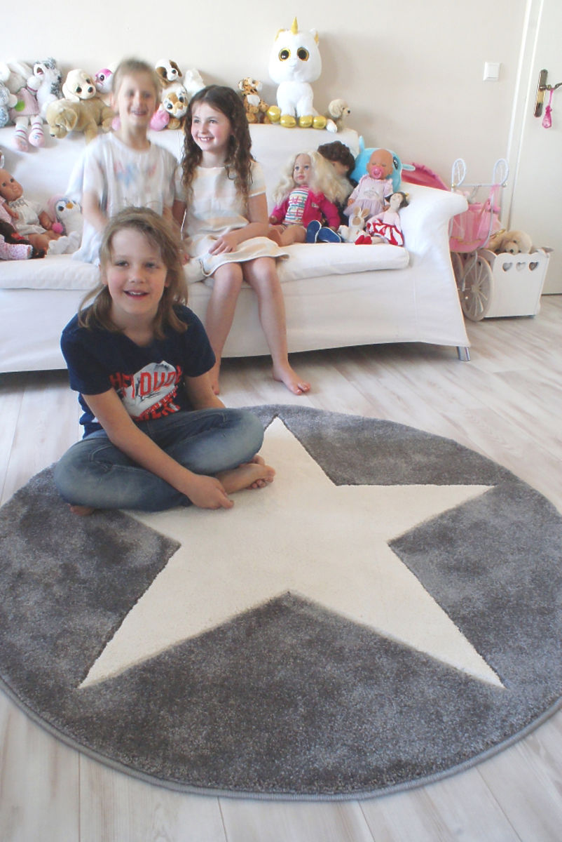 Dětský koberec je v kulatém tvaru, v příjemné stříbrno - šedé barvě. Na koberci najdete velkou bílou hvězdu. Hodí se do všech dětských pokojíčků, chlapeckých i holčičích. Vydekoruje rovněž studentský pokojíček.