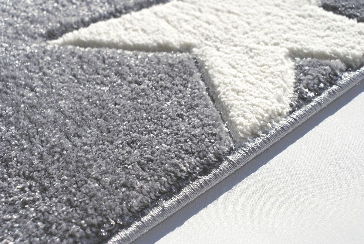 Velmi snadno se udržuje a čistí. Dětský koberec stříbrno-šedý s motivem bílých hvězdiček je moderní, vhodný do všech interiérů, pro chlapečky i pro holčičky. Vhodný rovněž také do studentských pokojíčků.
