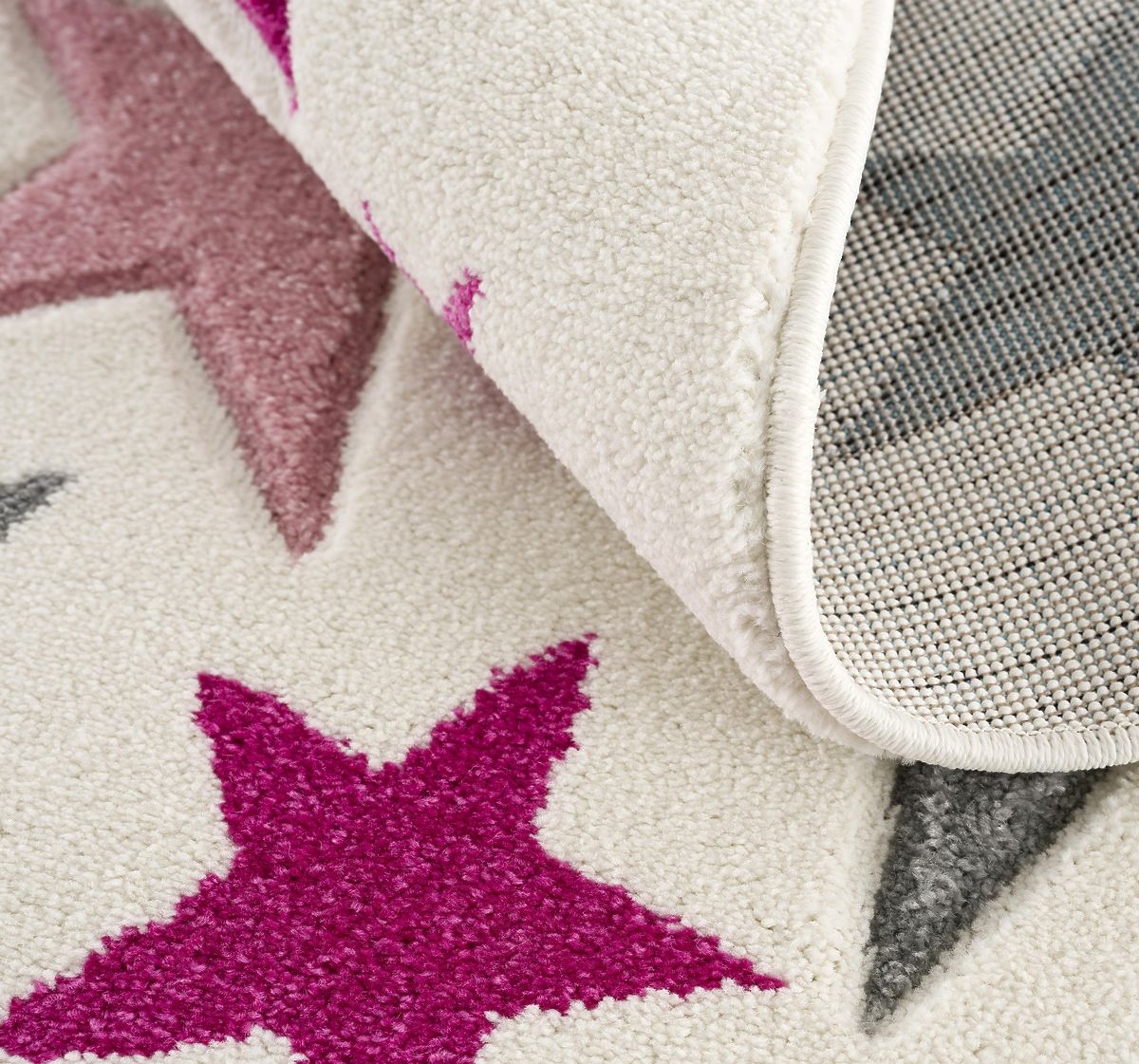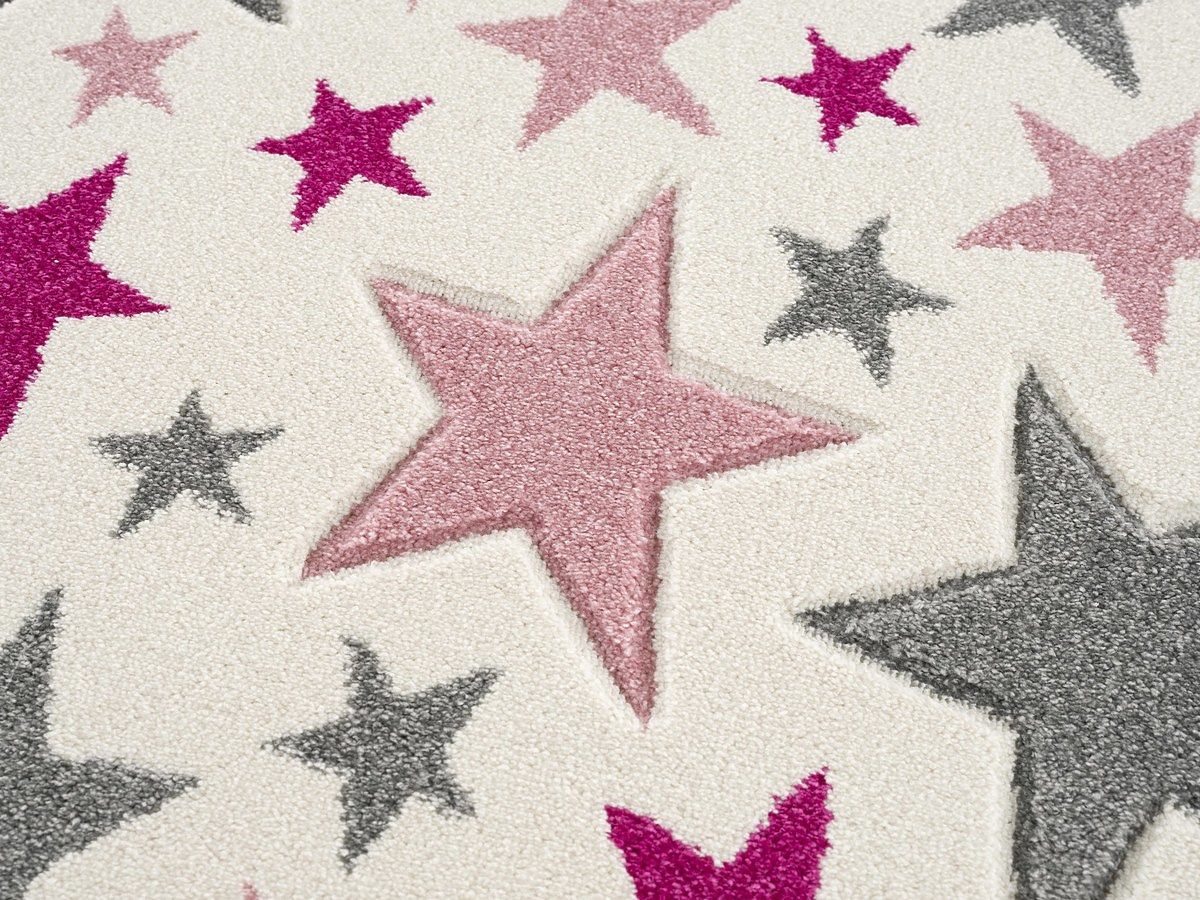 Luxusní kulatý krémový koberec s růžovými a šedými hvězdami od německé společnosti LIVONE do dětského nebo studentského pokoje pro holky. Vlastnosti:- příjemný .. više