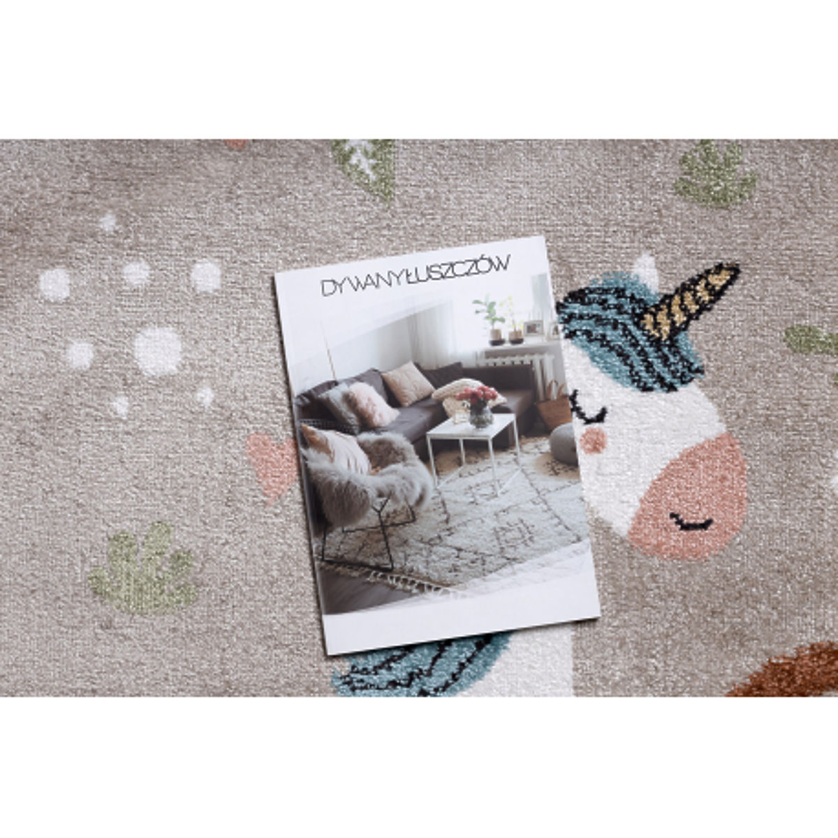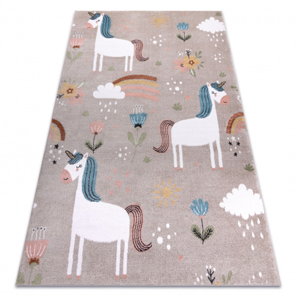Očarajte dječju sobu čarobnom atmosferom s tepihom FUN Sweety, koji krasi simpatični jednorog i šarena duga. Nježna bež boja djeluje harmonično i lako se uklapa s ostalim namještajem i dekoracijama. Tepih je mekan, ugodan na dodir i idealan za igru, odmor i svakodnevne radosti. Zahvaljujući izdržljivom materijalu, savršeno odgovara dječjoj sobi, igraonici ili vrtiću.