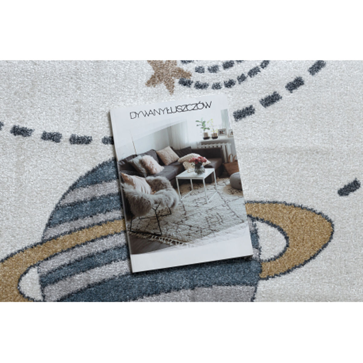 Pravokutni tepih BONO 8288 Prostor i planeti unosi svemirsku atmosferu punu mašte i otkrića u dječju sobu. Krem podloga u kombinaciji s antracitnim detaljima stvara moderan i vizualno privlačan izgled koji se lako uklapa u različite interijere.
