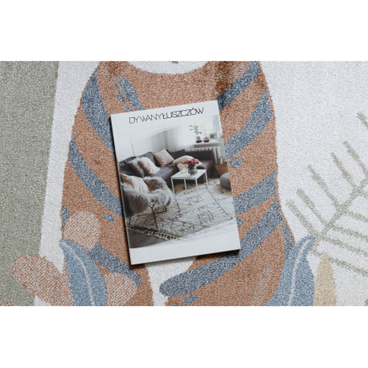 Pravokutni tepih BONO 8426 Jungle unosi egzotičan i razigran dodir u dječju sobu. Krem podloga u kombinaciji s tamno zlatnim detaljima stvara elegantan, a ipak živahan izgled, koji se uklapa u razne interijere.