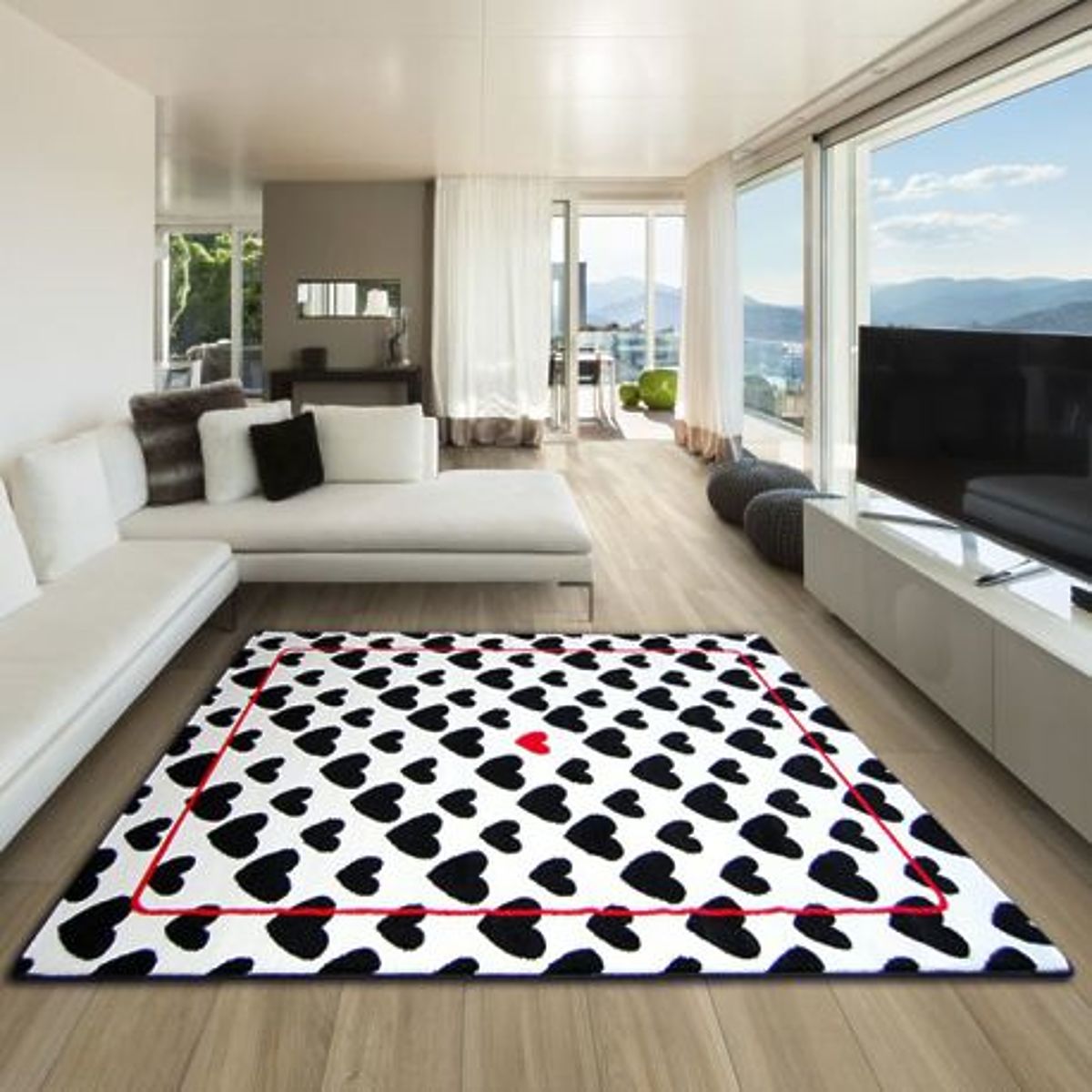 Moderni tepih SKETCH s motivom srca u krem i crnoj boji. .. više