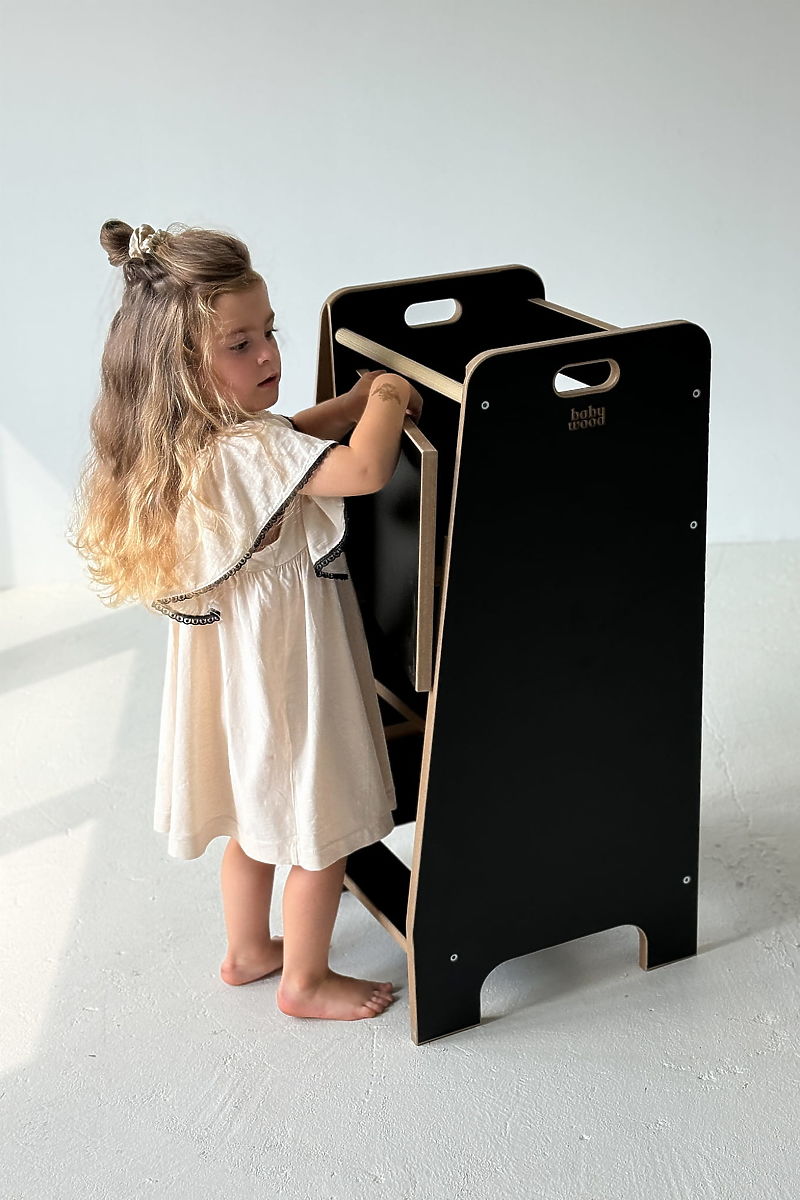 Učionica toranj Comfort predstavlja sigurno i praktično rješenje za obitelji koje žele uključiti djecu u svakodnevne kuhinjske aktivnosti. Zahvaljujući čvrstoj konstrukciji i odgovarajućoj radnoj visini, omogućuje djetetu da udobno i sigurno stoji tijekom pripreme hrane, dok roditelji imaju sve pod kontrolom. Minimalistički dizajn lako se uklapa u moderne i klasične kuhinje. Ovaj kuhinjski pomoćnik stvara prostor za zajedničke trenutke, učenje i razvoj samostalnosti. Djeca tako mogu prirodno usvajati nove vještine i stjecati sigurnost u svakodnevnim aktivnostima.