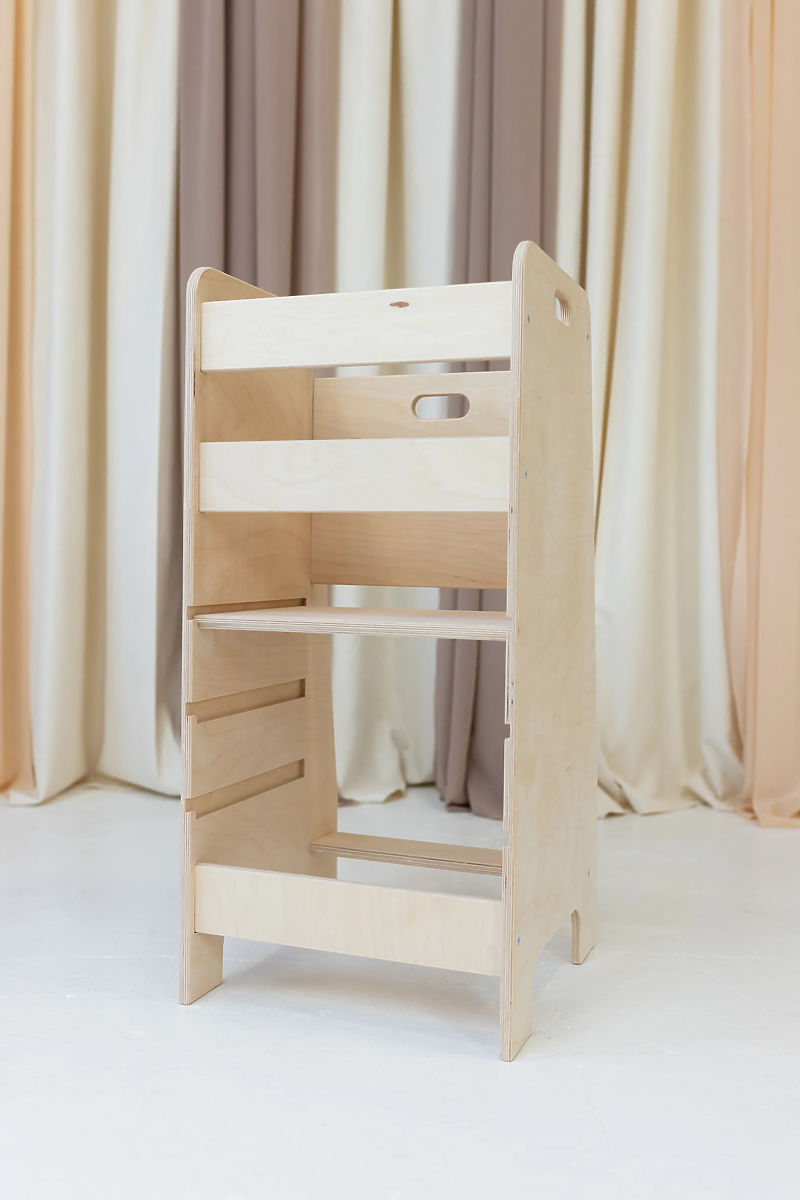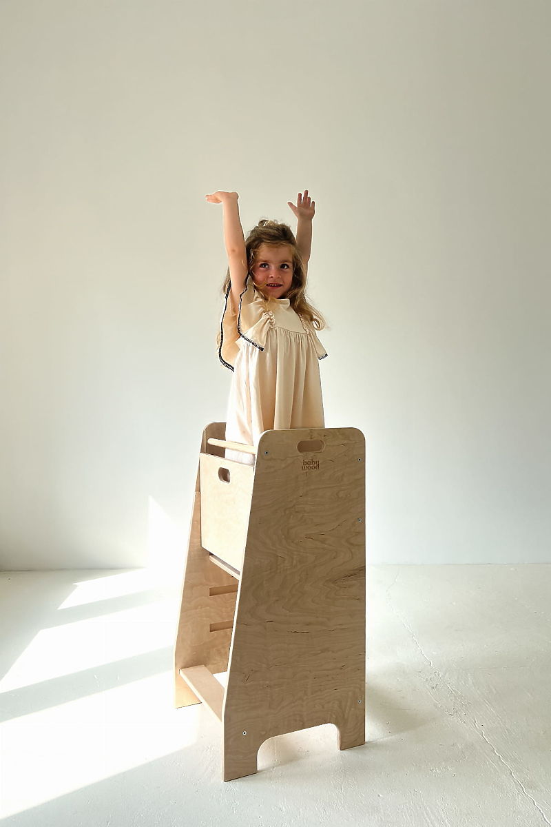 Učionica toranj Comfort je praktičan kuhinjski pomoćnik koji kuhanje s djecom pretvara u radosno zajedničko iskustvo. Dizajniran je s naglaskom na sigurnost, stabilnost i udobnost malih pomagača, kako bi se djeca mogla aktivno uključiti u svakodnevne kuhinjske aktivnosti. Zahvaljujući bezvremenskom dizajnu i širokoj paleti boja, lako se prilagođava svakoj kuhinji.